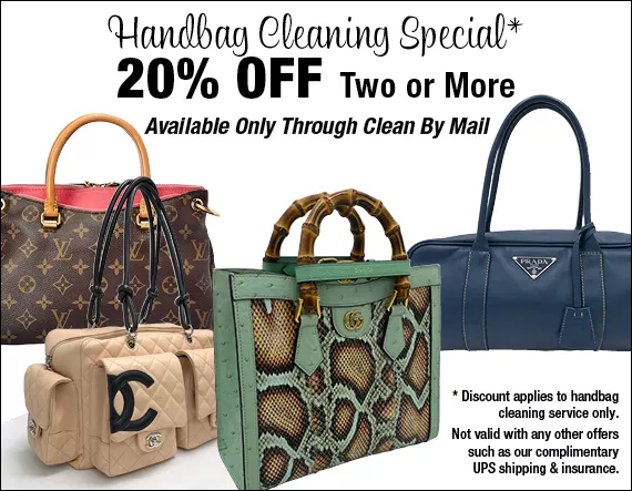 - Our 20% off two or more handbag cleaning offer through CleanByMail DOES NOT APPLY when using complimentary UPS shipping and insurance.